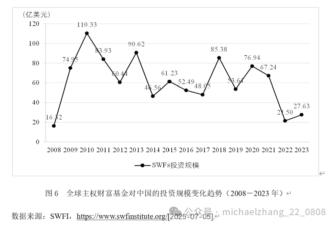 3万亿美元上升至2024年11月的11.9万亿美元。在全球金融危机期间(2008-2012年)、长期性停滞期间(2013-2017年)与逆全球化期间(2018年至今),全球主权财富基金的投资在投资地域、资产类型、投资行业、投资规模与收益率等方面存在显著差异。全球主权财富基金在开展相关投资时,通常会重点关注地缘政治冲突、中美博弈、全球价值链重构、ESG投资原则等因素。全球主权财富基金在中国进行了大量投资,但来自不同国家的主权财富基金在华投资的投资偏好存在较大差别。在地缘政治冲突加剧、中美博弈升级的背景下,无论作为主权财富基金的母国还是接受投资的东道国,中国面临的局势都更加复杂严峻。在此背景下,提出如下政策建议。首先,建议中国主权财富基金未来在开展对外投资时,可以作出如下调整。