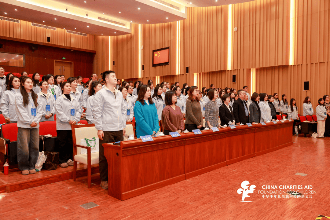 仪式在庄严的国歌声中拉开序幕。中华儿慈会理事长助理靳剑惠在致辞中,首先向远道而来的教师们致以诚挚欢迎。她赞誉幼儿教师是乡村幼儿的“点灯人”与“引航者”,对于儿童发展尤为重要。她表示,中华儿慈会始终坚持以儿童发展为中心,以儿童权益最大化为标尺,致力于打造具有广泛影响力和良好口碑的公益品牌项目。对于第八期训练营学员,靳剑惠寄予了殷切的期盼:一是热爱这份崇高的职业,勤学善思;二是肩负起“立德树人”使命,启迪智慧,塑造品格;三是培育具备创新精神和家国情怀的时代新人。