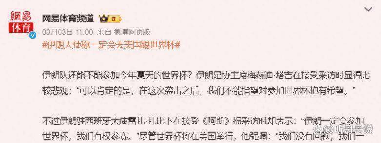 反转!伊朗驻西班牙大使强硬表态:我们有权参赛一定会去美国踢世界杯!雨燕直播- NBA直播- 足球世界杯 LIVE